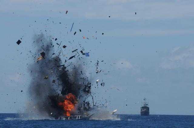 印尼分别在全国六处地点分批炸沉这些渔船,媒体称炸船行动得到总统佐科授权。