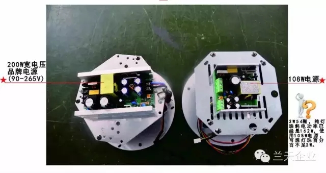 ——市场上很多低价格的电源都是虚标或者使用完全带动不了额定功率180W帕灯的108W低廉电源,其实消费者也很容易鉴别电源的好坏。好的品牌电源上面的变压器和功率管体积都相对大些,整体看上去比较饱满有质感;元器件排列和生产工艺也相对要好,整体看上去干净整洁美观。低廉无保障的电源设计上偷工减料,防浪涌、整流滤波、稳流能省则省,不能省也省,电子元器件也有用回收料的,完全不考虑实际使用的安全性和稳定性。