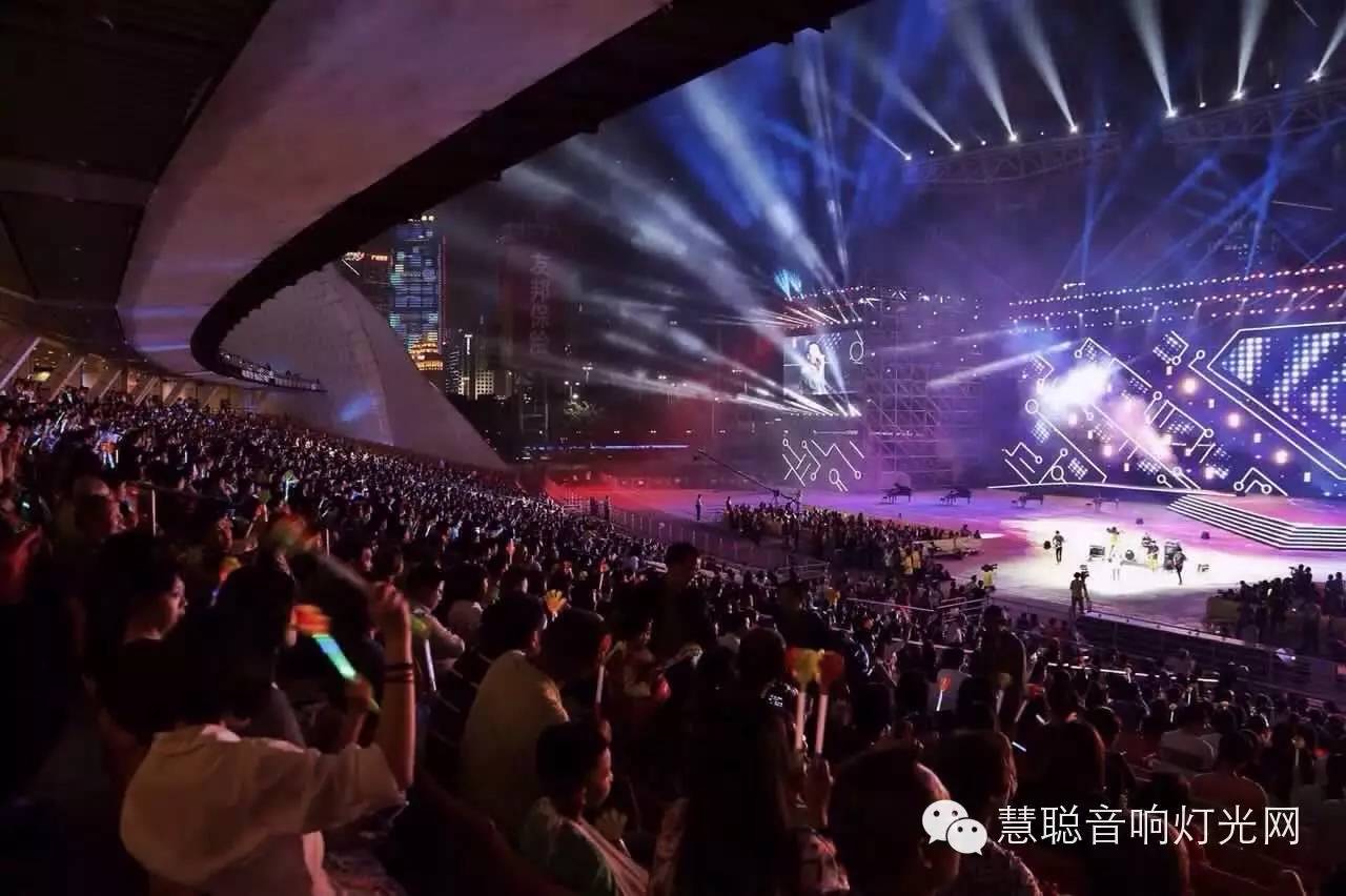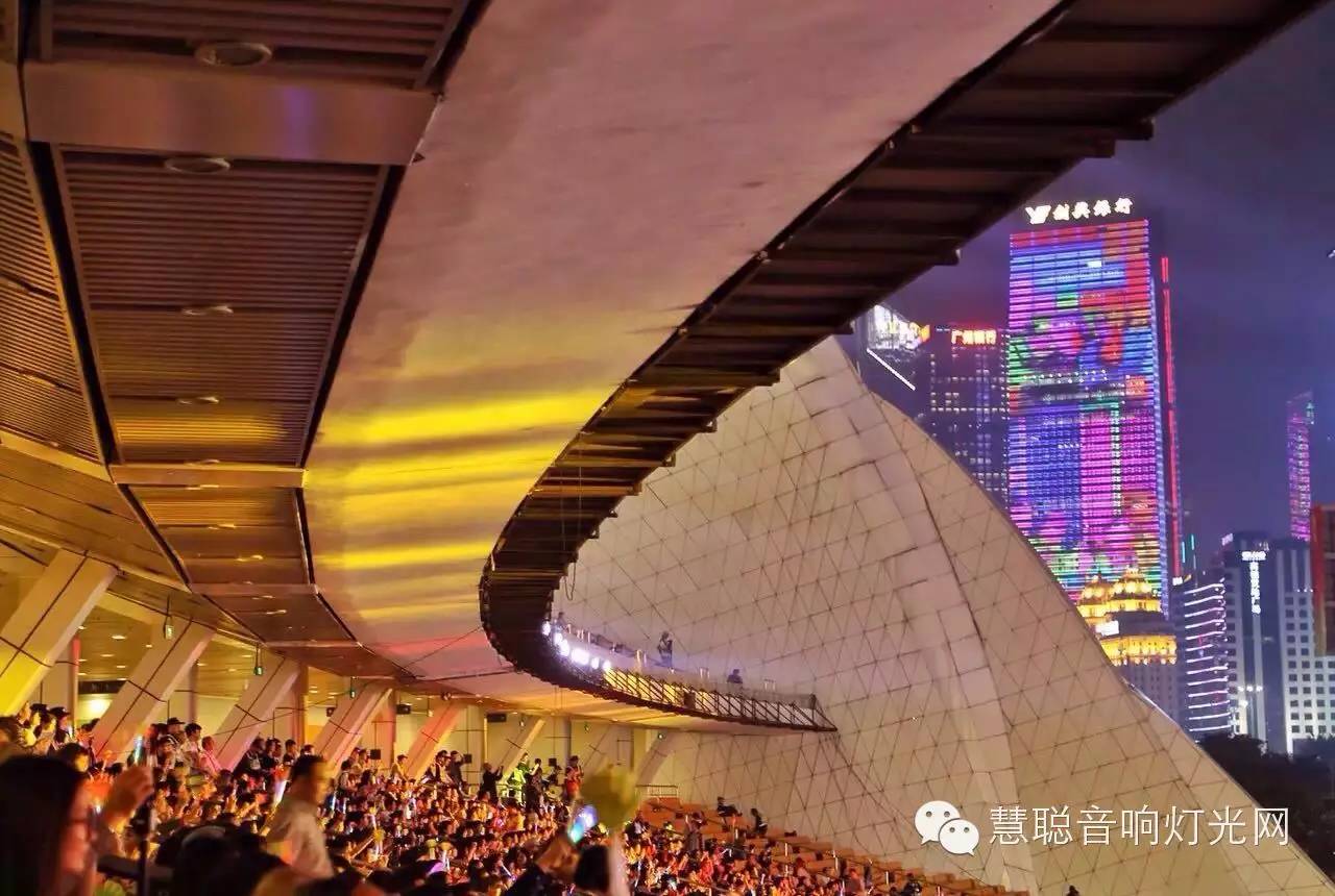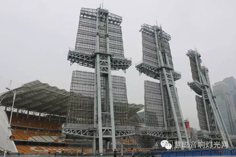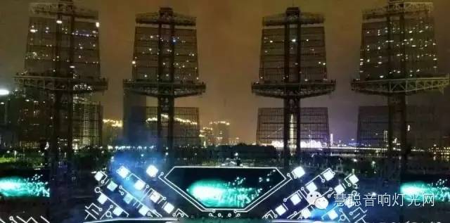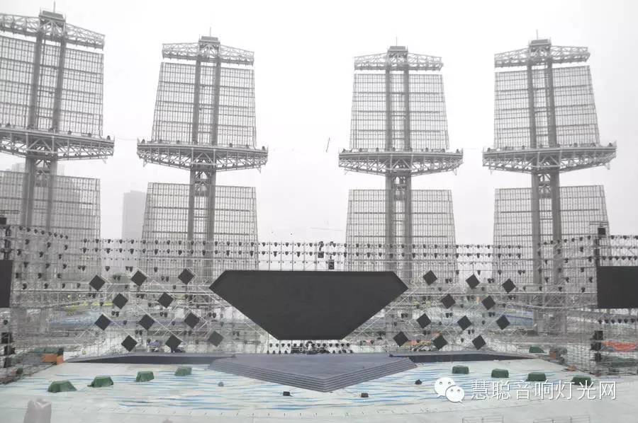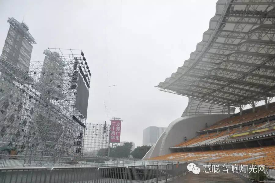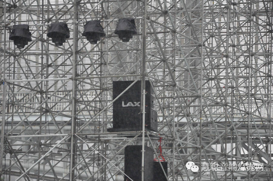 所以现场的音箱架得很高,有26米,才能与上面的(观众席)齐平,因此这样的音箱才是反三角形。音箱摆放的角度和高度需要前期的计算,现场施工的时候也要测量,是一项精准工程,需要专业团队来执行。所以说音响设计是一项具备科技含量的工作,不是简单摆几个音箱就完事了。