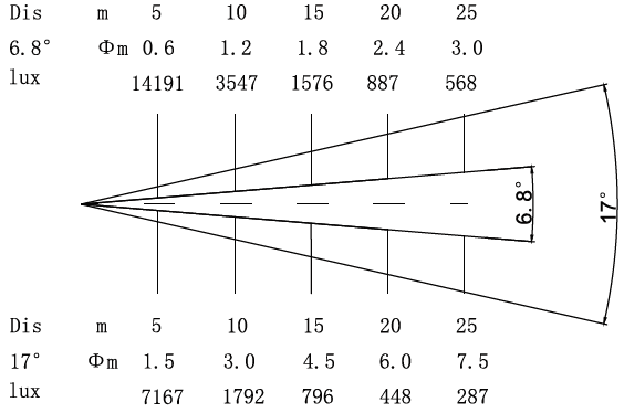 光 束 角: 手动调节,7°~17°
